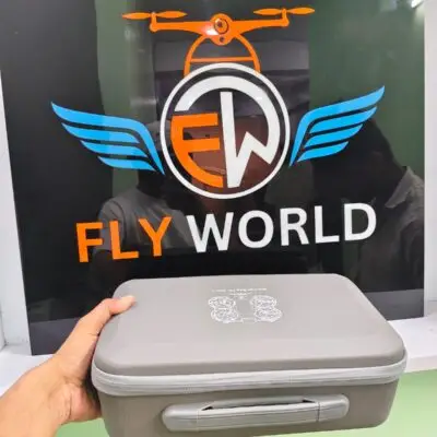 Onboard controls include an integrated joystick and other buttons on the handle grip. A system status indicator displays the battery level and gimbal mode.