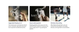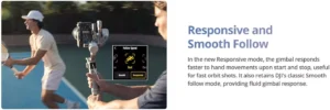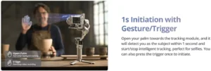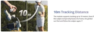 The tracking module can be controlled using the gimbal or by using hand gestures. You can start/stop tracking or enable different modes, such as orbit mode, POV/selfie mode, or backward tracking shots. It can easily distinguish your subject when in a scene with multiple people, so you can follow a subject through complex scenarios.