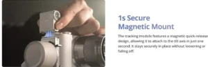 Easily track your subjects when using an RS 4 series handheld gimbal stabilizer with the DJI RS Intelligent Tracking Module. The compact module snaps onto your RS 4 series gimbal using a magnetic mount and securely locks into place. It is designed to work with the gimbal’s ActiveTrack technology for one-tap intelligent tracking and framing of human subjects from up to 32.8′ away.