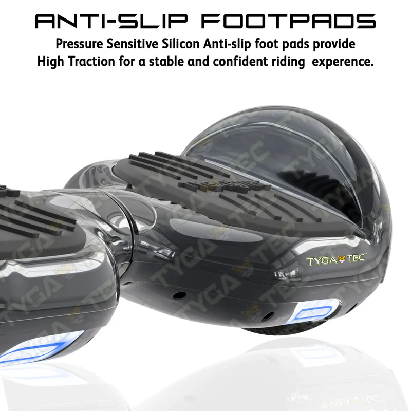 🛡️ Sturdy and Stable Design: Built for comfort and control, the hoverboard features full-length, anti-slip rubber foot platforms, ensuring a secure grip and seamless maneuvering.